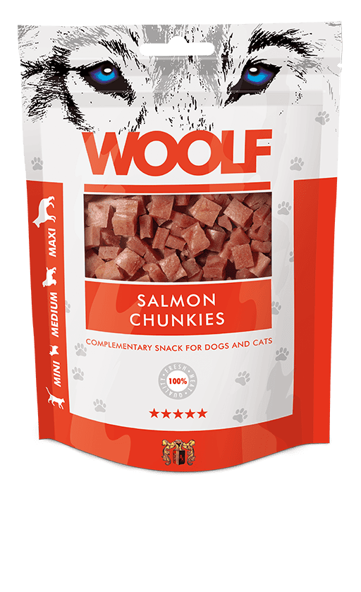 Woolf Salmon Chunkies er lækre godbidder lavet af 91% laks og 4% ærteprotein, hvilket giver en velsmagende og næringsrig snack til din hund eller kat. Disse godbidder er helt fri for kemiske tilsætningsstoffer, konserveringsmidler eller farvestoffer. Glycerin (3%) sikrer en god konsistens og længere holdbarhed.